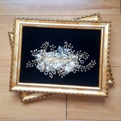 こちらの髪飾りは一点物のため、お客様と打ち合わせをさせていただきながら制作するため、2ヶ月ほどお時間をいただいております。