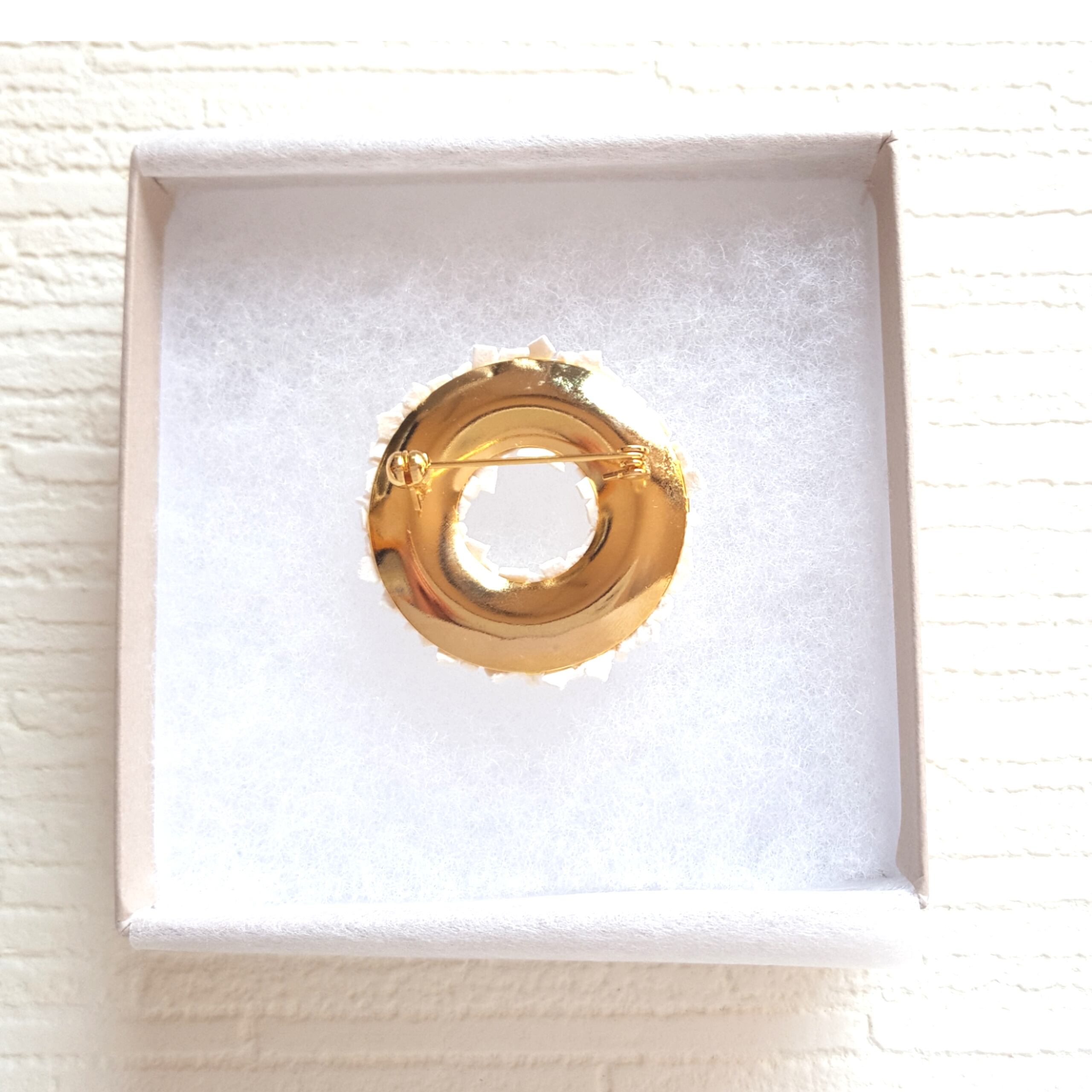 純白の豚革を小さなお花に一つ一つ手作業で仕立て、淡水パールで丁寧に縫い付けました。